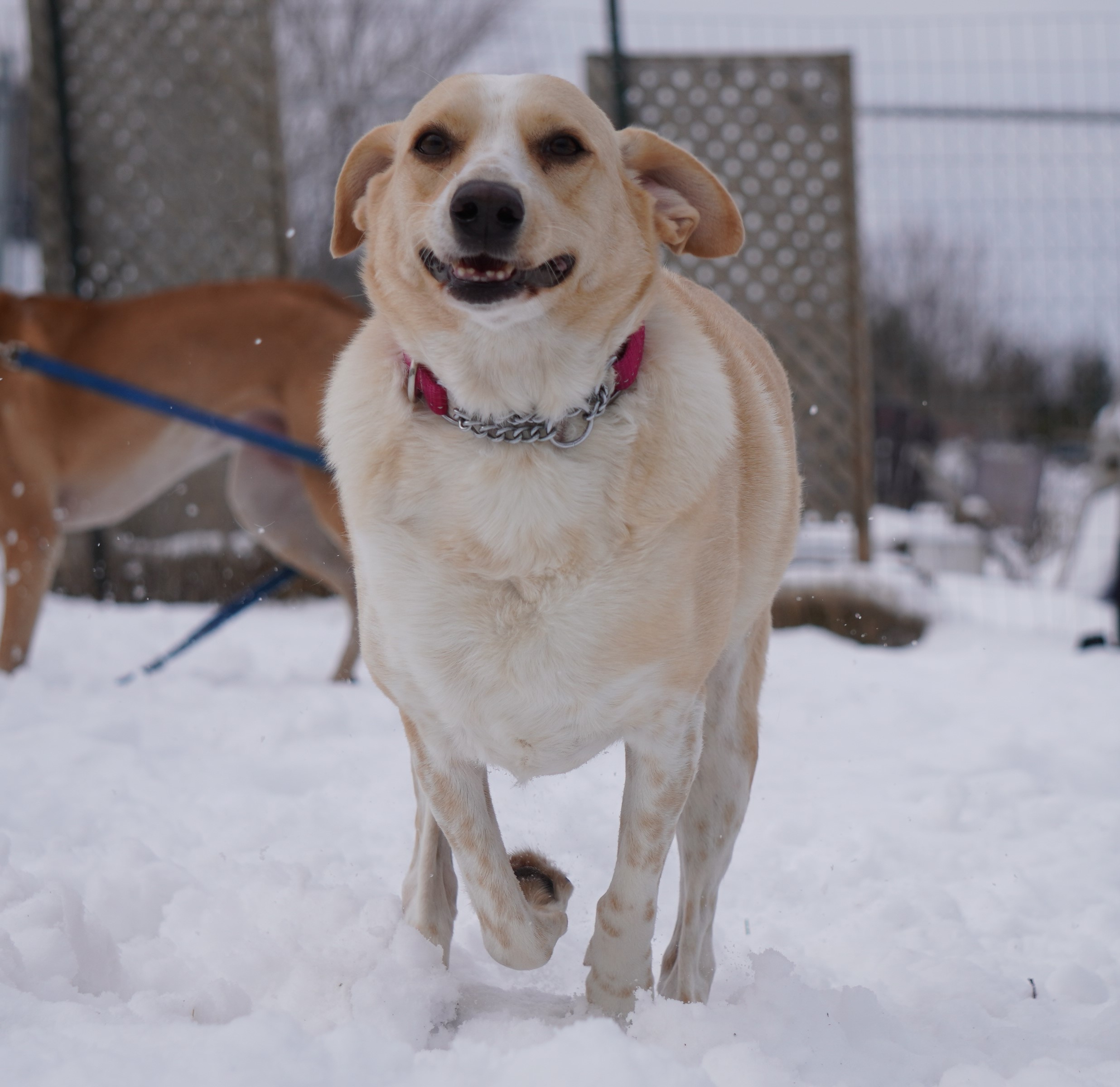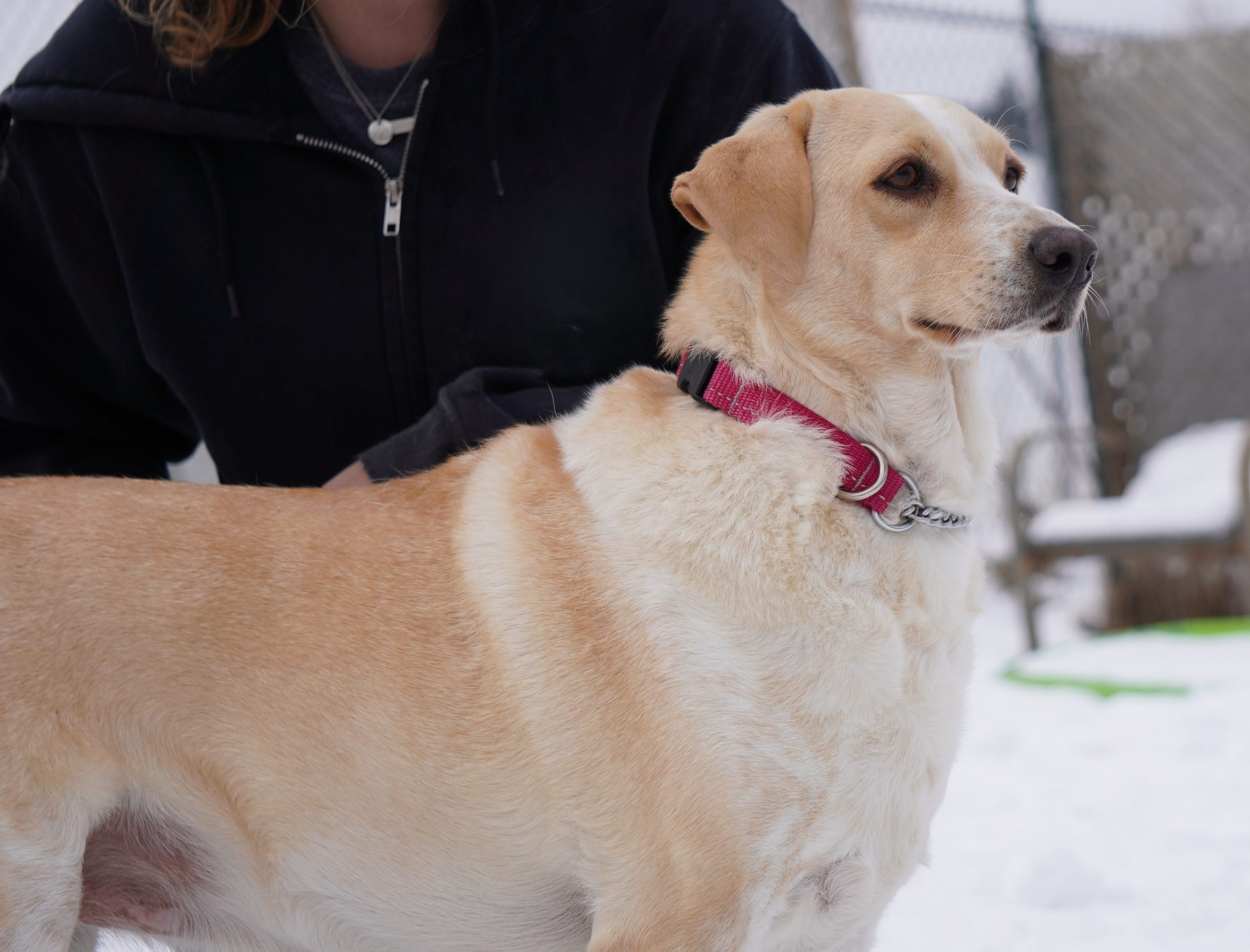 Nala walks well on leash and is a dream on daily strolls. She is adjusting to her new surroundings (and her first Canadian winter!). Nala is still figuring out snow — it’s not quite her favourite yet — but she’s perfectly happy bundling up in a cozy coat and heading out for a walk.