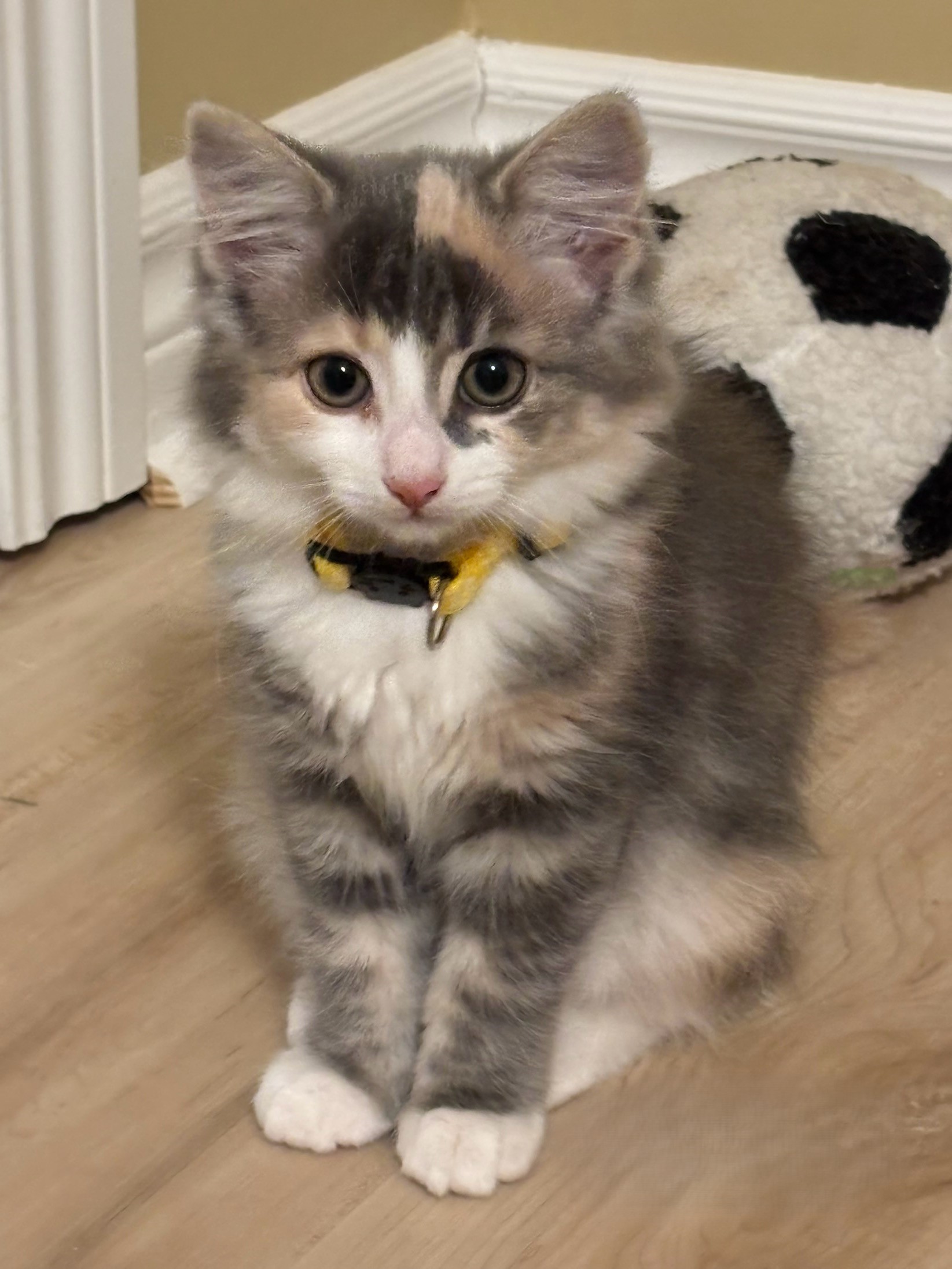 Smokie loves a play session followed by a cozy nap—true kitten behavior at its best. She also enjoys sitting by the window and watching the activity outside.